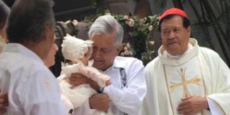 CIUDAD DE MÉXICO, 18 de marzo (AlMomentoMX).– Este domingo se difundió en redes sociales una fotografía del presidente Andrés Manuel López Obrador en un bautizo, a lado del excardenal Norberto Rivera y el empresario Miguel Rincón Arredondo.
