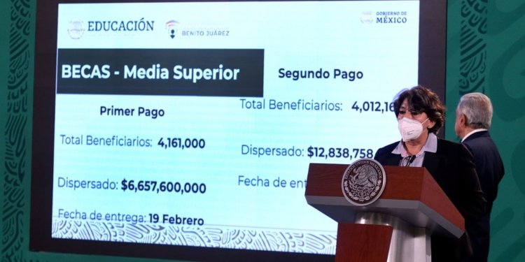 Detalló que, para los estudiantes de Educación Superior, se realizaron dos dispersiones, la primera, el 19 de febrero pasado, y la segunda, programada para en el mes de marzo, con un monto total de 490 mil 118 millones 700 mil pesos.