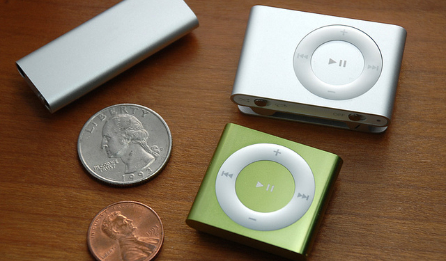 Por su parte, el iPod shuffle tuvo cuatro versiones distintas. El primero apareció en el 2005 y tenía una forma similar a una memoria USB. El segundo fue más pequeño e incorporó un clip. El tercero eliminó todos los botones y se controlaba por medio de la voz (e hizo enojar a todos). La cuarta versión es muy similar al segundo, pero más pequeño.