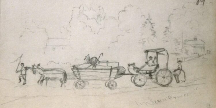 El arte de Adolf Hitler: dibujo del cuaderno de bocetos de Adolf Hitler, 1906. Imagen cortesía de Laski Diffusion, Getty Images.