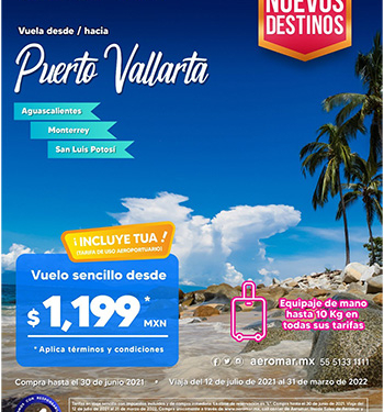 JALISCO.- La aerolínea Aeromar anunció sus nuevas rutas que operarán en el verano con conectividad desde el principal destino turístico de Jalisco, Puerto Vallarta, a la capital de Nuevo León, Monterrey.