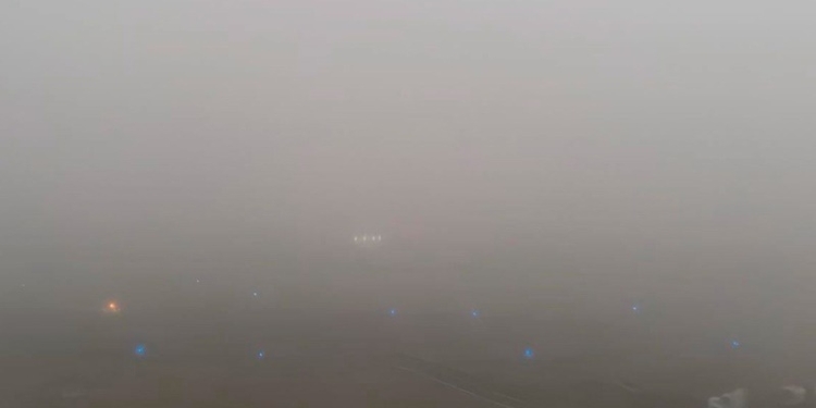 El mensaje fue acompañado por una fotografía en donde se observa de forma muy tenue el AICM cubierto por la espesa niebla.