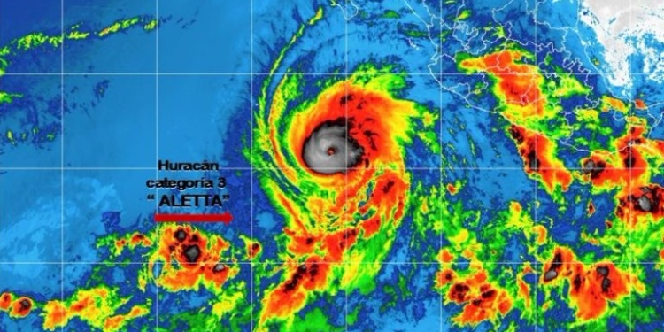 Aletta se localiza a unos 725 kilómetros al suroeste de Playa Pérula, Jalisco, y a casi 800 kilómetros al sur de Cabo San Lucas, Baja California Sur. Durante la madrugada alcanzó la categoría 3 y presentaba vientos de 195 kilómetros por hora (km/h), rachas superiores a 240 km/h y desplazamiento al oeste-noroeste, con lo que se aleja gradualmente.