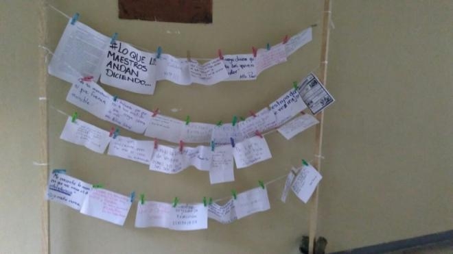 En el ITV, una veintena de alumnas colocó cartulinas y telas donde dieron a conocer el maltrato escolar, misoginia y acoso por parte de maestros y personal administrativo.