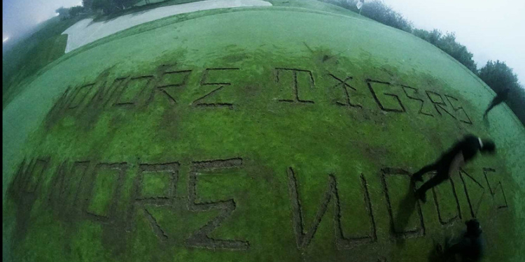 En el video de 64 segundos, los intrusos, vestidos de negro, usaron herramientas de jardinería para tallar en el campo un mensaje con letras de dos metros de alto que decía: “NO MORE TIGERS. NO MORE WOODS” (No más tigres, no más maderas) en un juego de palabras con el nombre del golfista Tiger Woods, aunque el mensaje nada tiene que ver con el jugador.