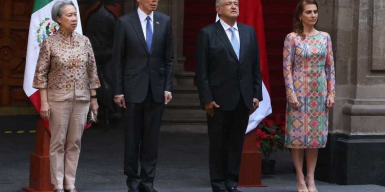 En medio de protestas por la desaparición de seguro popular, el mandatario mexicano, en compañía de su esposa, Beatriz Gutiérrez Müller, recibió al Primer Ministro en Palacio Nacional, para luego escuchar los Himnos de México y de Singapur. Tras ello, se dará un encuentro privado.