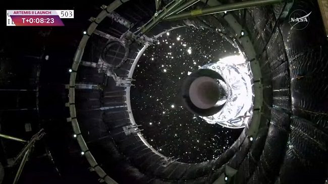 Entre otras partes que se liberan están las tres capas que protegen el módulo de servicio de Orión y también la torre de escape, que es un motor de seguridad sobre la cápsula tripulada para uso de emergencia. “Eso se utiliza si hay que sacar la cápsula en el caso de que hubo un fallo del cohete o el cohete explotase. Pero si no lo necesitamos, en unos 5 minutos más o menos ya lo podemos quitar”, explicó.