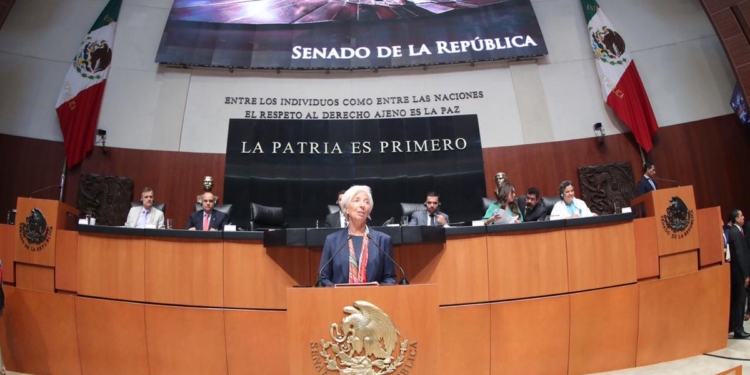 Monreal Ávila dijo que lograr el crecimiento económico de México dependerá también de la buena cooperación entre el país y el resto del mundo. “Por ello, me congratulo, a nombre de la Junta de Coordinación Política, de que México pueda contar con el Fondo Monetario Internacional y de que el Fondo pueda contar con México”.