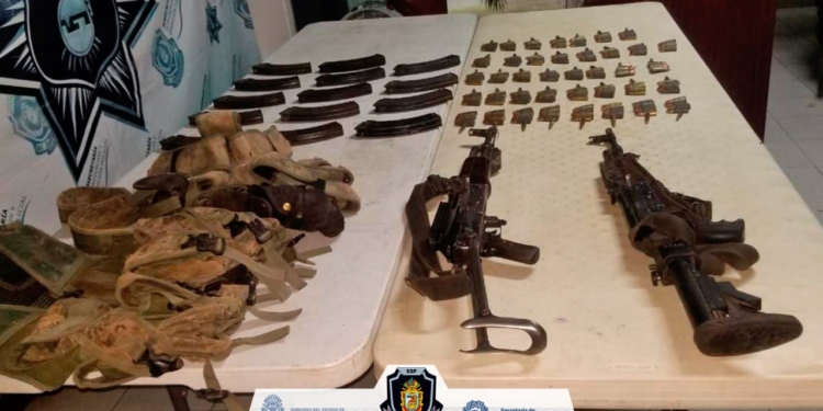 Al realizar una revisión de la unidad fueron asegurados un fusil AK-47 con un cargador abastecido con 30 cartuchos útiles calibre 7.62x39mm; un fusil AK-47, con un cargador con 30 cartuchos útiles calibre 7.62x39mm; una mochila que contenía 340 cartuchos calibre 7.62x39mm, 11 cargadores metálicos y un cargador para calibre 7.62×39, un chaleco táctico sin placas balísticas y una fornitura.