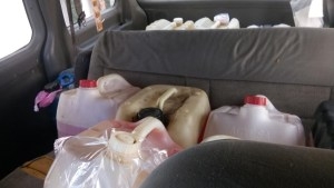 Al intentar darles alcance, los agentes policiales detectaron 11 automóviles abandonados y con las puertas abiertas, así como una pipa marca Freightliner, color guinda, que transportaba hidrocarburo.