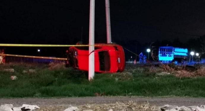 Policías municipales fueron alertado del accidente, acudieron y encontraron en el sitio un auto volcado y en su interior en el asiento del piloto se localiza el cuerpo de una persona, quien presenta lesiones en la cabeza de las producidas por proyectil disparado por arma de fuego.