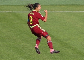 La venezolana, Deyna Castellanos, festeja uno de sus dos anotaciones del encuentro. AMMÁN, 12 de octubre (AlMomentoMX).- La Selección...