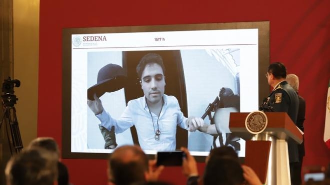 En las imágenes difundidas este miércoles por las autoridades federales se puede observar al hijo de “El Chapo” hablando por un teléfono celular y se le escucha decir: “Ya paren todo oiga, ya paren todo, ya me entregué, ya paren todo por favor… Dígales que ya se retiren, ya tranquilos, ya ni modo”.