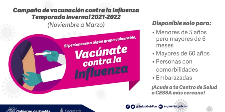 La campaña de vacunación contra la influenza inició a nivel nacional y en Tlaxcala en el mes de noviembre de 2021 y terminará el 31 de marzo de 2022.