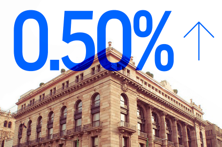 El aumento se da por encima de lo esperado por el mercado, que pronosticaba un alza en 25 puntos base, a 4 por ciento, de acuerdo con una encuesta de Bloomberg.
