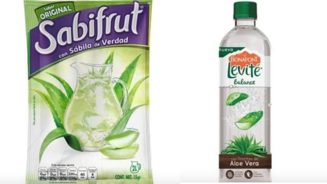 Dentro de las marcas mexicanas, las que presentaron menor contenido fueron “Bonafont Levité” con extracto de aloe vera, en su presentación de un litro, que apenas contiene el 0.01% de esta planta, mientras que los sobres de polvo “Sabifrut” con sábila, de 15 gramos, apenas presentan el 1%.