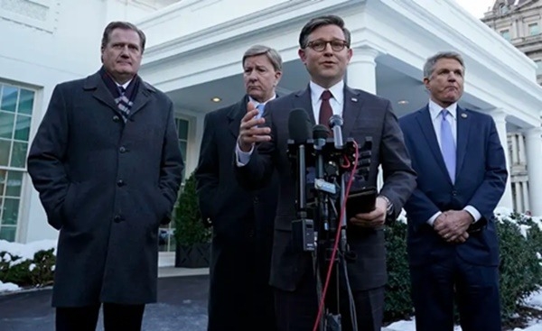 «Debemos insistir en que la frontera sea la prioridad máxima. Creo que tenemos cierto consenso sobre ello», dijo Johnson a los periodistas después de la reunión. Johnson casi no tiene margen de maniobra, ya que los republicanos sólo cuentan con una estrechísima ventaja en la Cámara, lo que da a la facción de extrema derecha el control de la política del partido.