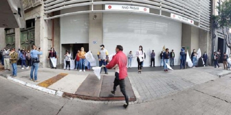 Los dirigentes de la CODUC en Jalisco acompañados del Secretario General, Marco Antonio Ortiz Salas, bloquearon los accesos a la dependencia sobre Av. Reforma y el acceso al estacionamiento sobre Donato Guerra.