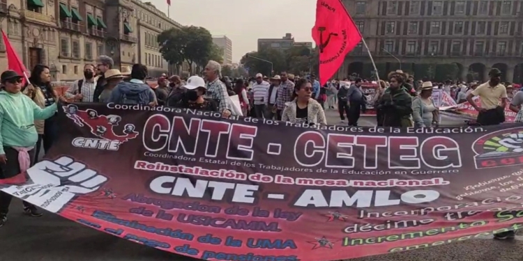Redacción, Noticias MX Político.- Integrantes de la Coordinadora Estatal de Trabajadores de la Educación en Guerrero (CETEG) instalaron un plantón por tiempo indefinido en el Zócalo de la Ciudad de México, frente al Palacio Nacional, para exigir que el presidente Andrés Manuel López Obrador resuelva sus demandas.