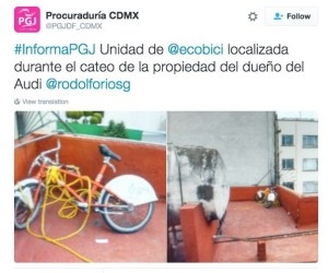 Al obtener la ubicación de Márquez Salmerín, el Ministerio Público presentó elementos de prueba ante el juez Trigésimo Segundo Penal para que concediera una orden de cateo en la que se encontró -en la azotea- la bicicleta que arrolló #LordAudi al evitar ser detenido por un elemento de seguridad bancaria.