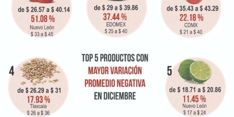 CIUDAD DE MÉXICO, 19 de diciembre (AlmomentoMX).- Como cada mes la Alianza Nacional de Pequeños Comerciantes (ANPEC) da a conocer los resultados de su monitoreo mensual de precios de la canasta básica y uno especial sobre la cena de Navidad y Año Nuevo, en el que se detecta que la variación de precios en los ingredientes para las cenas varían hasta 66.67% en el canal de venta tradicional y moderno.