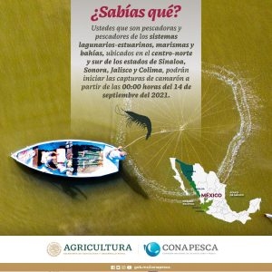 Por su parte, la actividad pesquera arranca desde las 00:00 del 14 de septiembre de 2021 en los sistemas lagunarios-estuarinos, marismas y bahías; que están ubicadas en el centro-norte y sur de Sinaloa, Sonora; Jalisco y Colima.