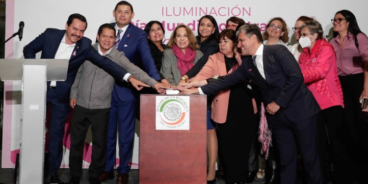 Redacción MX Político.- El presidente de la Mesa Directiva, Alejandro Armenta Mier, encabezó la ceremonia para iluminar las instalaciones del Senado de color rosa, a fin de conmemorar el “Día Mundial de Lucha contra el Cáncer de Mama”.