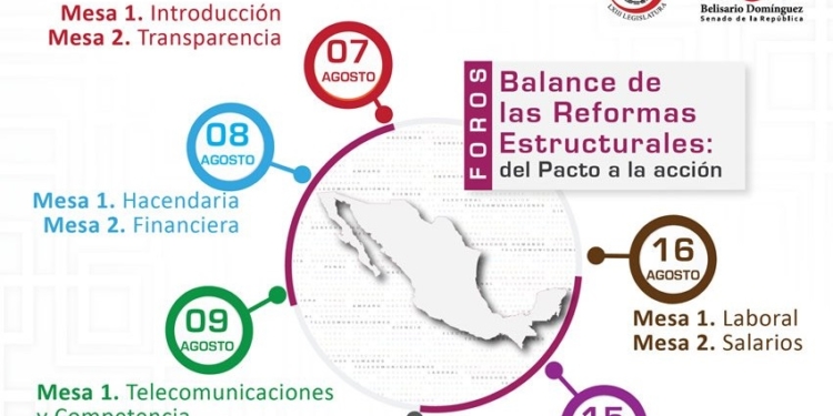 CIUDAD DE MÉXICO, 6 de agosto (AlmomentoMX).- Con el objetivo de analizar los avances en la implementación de las 11 Reformas Estructurales aprobadas en los últimos seis años por el Congreso de la Unión, el Instituto Belisario Domínguez convoca a las y los senadores que conformarán la LXIV Legislatura, a especialistas y a todo el público interesado, a participar en los foros: “Balance de las Reformas Estructurales: del pacto a la acción”, que arrancarán este martes 7 de agosto en las instalaciones del Senado de la República.
