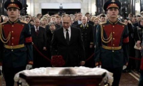 El diplomático fue enterrado poco después el cementerio de Khimki, en un suburbio norteño de Moscú con honores militares, y la presencia de familiares y los más allegados, entre ellos Putin, quien expresó: ”Debemos saber que dirige la mano del asesino”.