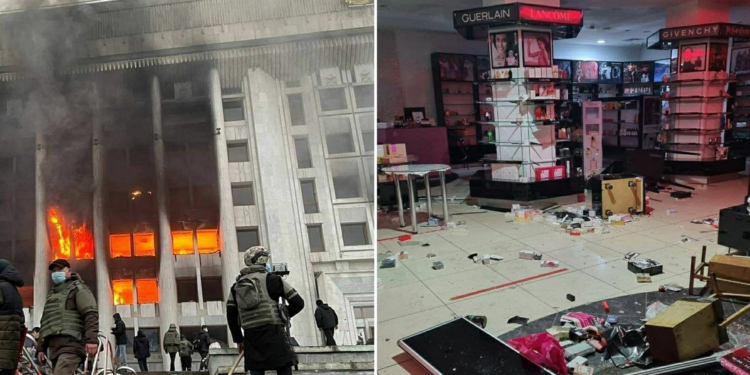 Asimismo, se han registrado saqueos masivos y enfrentamientos entre las fuerzas de seguridad y algunos manifestantes. Las manifestaciones empezaron el 2 de enero tras la drástica subida de precios del gas licuado del petróleo, pero pronto adquirieron matices políticos, lo que ha conllevado a la dimisión de los miembros del Gobierno y el apartamiento definitivo del poder del expresidente Nursultán Nazarbáyev.