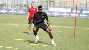 CIUDAD DE MÉXICO, 29 de agosto (AlMomentoMX).- Tras una multitudinaria presentación el delantero francés  Ousmane Dembélé realizó su primer entrenamiento con algunos de sus compañeros del Barcelona, donde se ausentó el brasileño Marlon Santos, que se encuentra en Niza para cerrar su cesión de dos años.