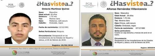 Este domingo, la PGR informó de la desaparición de los agentes Octavio Martínez Quiroz y Alfonso Hernández Villavicencio, quienes fueron a Nayarit para asistir a un bautizo, aprovechando su día de descanso.