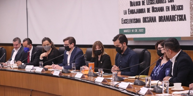 CIUDAD DE MÉXICO.- Este jueves, legisladoras y legisladores de diversos grupos parlamentarios se reunieron en la Cámara de Diputados con la embajadora de Ucrania en México, Oksana Dramarétska, para dialogar en torno a la democracia y la paz internacional.