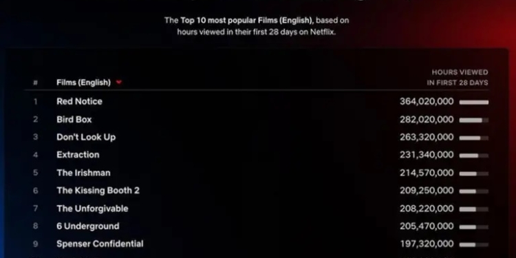 A continuación te dejamos la lista de las 10 películas más vista en Netflix durante sus primeros 28 días de estreno: