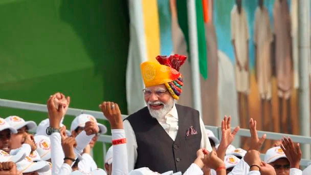 Ataviado con un turbante de varios colores, Modi se dirigió al país desde el Fuerte Rojo — una construcción del siglo XVII en Nueva Delhi — para decir que su gobierno había sacado a más de 130 millones de personas de la pobreza y que la creciente prosperidad del país era una oportunidad para el mundo.