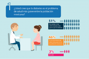 Además, el estudio arrojó que 51% de los mexicanos no consideran la diabetes como el problema más grave de salud en nuestro país, ya que consideran, existen otras enfermedades más graves. Opuesto al 46% que consideran que la diabetes sí es el problema de salud más grave entre la población mexicana.