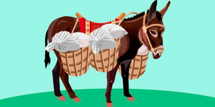 “Un burro cargado de sal atravesaba un río. Al resbalar se cayó al agua y como se disolvió parte de la sal, se levantó más ligero. El burro se quedó contento de la caída. Más tarde, cuando pasó otra vez por un río, ahora, cargado de esponjas, creyó que si se dejaba caer de nuevo se levantaría más ligero, entonces resbaló adrede, pero, lo que le ocurrió fue que, al empaparse de agua las esponjas, no pudo levantarse y se ahogó allí mismo”. Así también, los hombres que no se dan cuenta que, por sus propias argucias, se ven arrastrados a la desgracia, como pasó en esta fábula de Esopo.