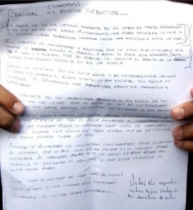El sujeto, quien ya comenzaba a ser conocido como El Poeta Caníbal o El Caníbal de la Guerrero tuvo que rendir su declaración en el Hospital de Xoco, debido a que la caída, en su intento de huida, le había costado un fuerte golpe. Sus palabras dejaron congelados a sus entrevistadores: “Sí maté a la mujer, pero no la comí; encontraron mis poesías, ¿qué les parecieron?”.
