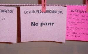Algunas mujeres que acudieron a la exposición se sumaron a ésta de manera espontánea, comenzaron a tomar las papeletas y agregaron su respuesta en la parte de atrás o donde quedara algún espacio vacío.