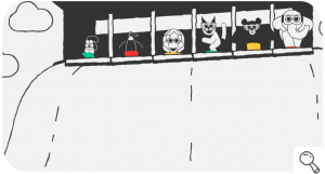 En el doodle animado, los animales son los que practican este deporte, deslizándose por la pista, en la que el elefante lidera, seguido por el oso en segundo sitio y el gato en la posición tres disputando con el armadillo.