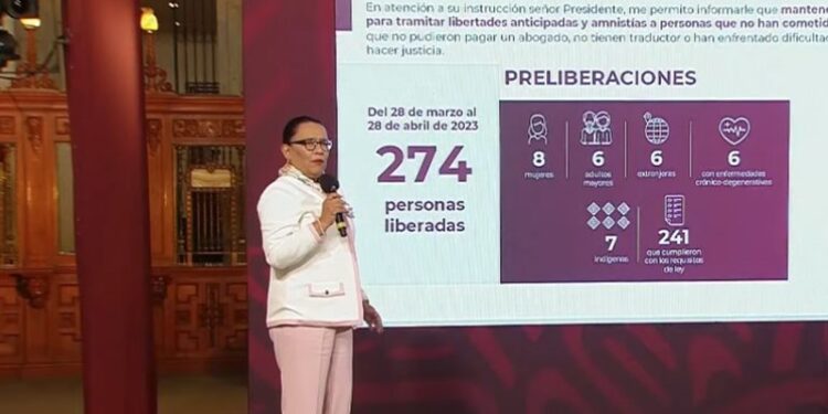 Redacción MX Político.- La secretaria de Seguridad y Protección Ciudadana, Rosa Icela Rodríguez, informó este martes que en el último mes lograron 274 personas más lograron su liberación anticipada de penales del país, como parte del programa del gobierno federal para “hacer justicia”. En total, suman 5 mil 791 personas beneficiadas.
