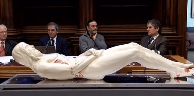 El profesor, sobre la base de sus mediciones, ha hecho realizar un “calco” en 3D que – afirma él – le permite afirmar que estas son las reales medidas del Cristo crucificado.