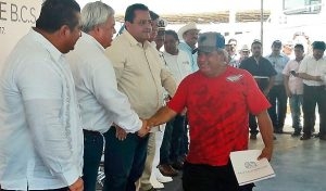 En ciudad López Mateos el Comisionado y el Gobernador hicieron entrega de apoyos para pescadores del Golfo de Ulloa y para el fortalecimiento de la inspección y vigilancia, que implica la entrega simbólica de incentivos a los propios pescadores con lo que se concluye la inversión comprometida por el Gobierno Federal por un total de 72 millones de pesos para los siguientes conceptos: