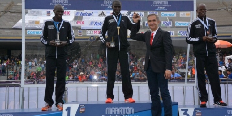 CIUDAD DE MÉXICO, 29 de agosto (Almomento MX).- El Jefe de Gobierno, Miguel Ángel Mancera Espinosa, entregó las medallas de primer lugar a los ganadores de la rama femenil y varonil del Maratón de la Ciudad de México 2016, Diana Lobacevske, de Lituania, y Emmanuel Mnangat, de Kenia, respectivamente, y cuya competencia finalizó con saldo blanco, en el Estadio Olímpico de Ciudad Universitaria.