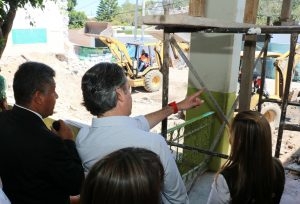 Luego, en la escuela primaria constató las afectaciones en los salones de clases, y expresó que se avanza en la calendarización de trabajos para que los niños estén en clases en los próximos días, en sus escuelas o reubicados en planteles cercanos o aulas provisionales, para iniciar la etapa de reconstrucciones parciales o totales