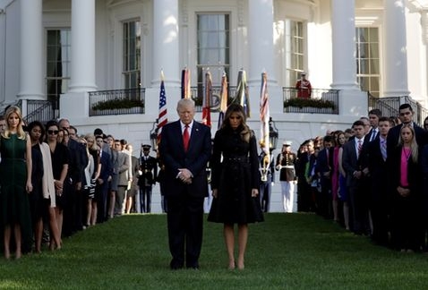 Antes de visitar el Pentágono, Trump y su esposa encabezaron un momento de silencio en los jardines del ala sur de la Casa Blanca en recuerdo de las víctimas del 11-S.