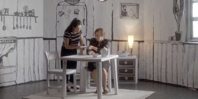 El diseño de la producción, como ya se mencionó, respeta la propuesta visual de la historia original plasmada en el cómic (que puedes conocer haciendo clic en el siguiente enlace). Ambientada en un escenario que recrea el blanco y negro de la historieta, la obra transporta por el tiempo al espectador, haciendo constantes elipsis entre los años 1940 y 2020.