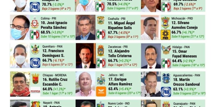 En los resultados del estudio de abril de 2021 los gobernantes que obtuvieron el mejor posicionamiento son: