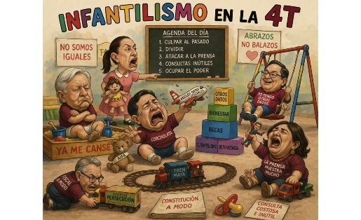 Son infantiloides por su sectarismo. Porque solamente dizque gobiernan y mal legislan para los de su propia secta, con el trillado y quién sabe si cierto cuento de que en 2024 ganaron con 36 millones de votos. Soslayan que, de casi 100 millones de electores, 64 millones no votaron por el “segundo piso” del régimen de Cuarta…