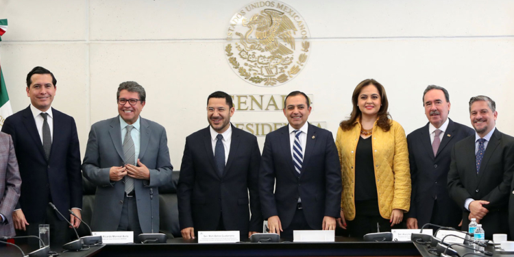 En el encuentro, los secretarios generales de Servicios Administrativos y de Servicios Parlamentarios, Roberto Figueroa Martínez y Arturo Garita Alonso, respectivamente, entregaron las carpetas con la información sobre el estado que guarda la administración del Senado de la República.